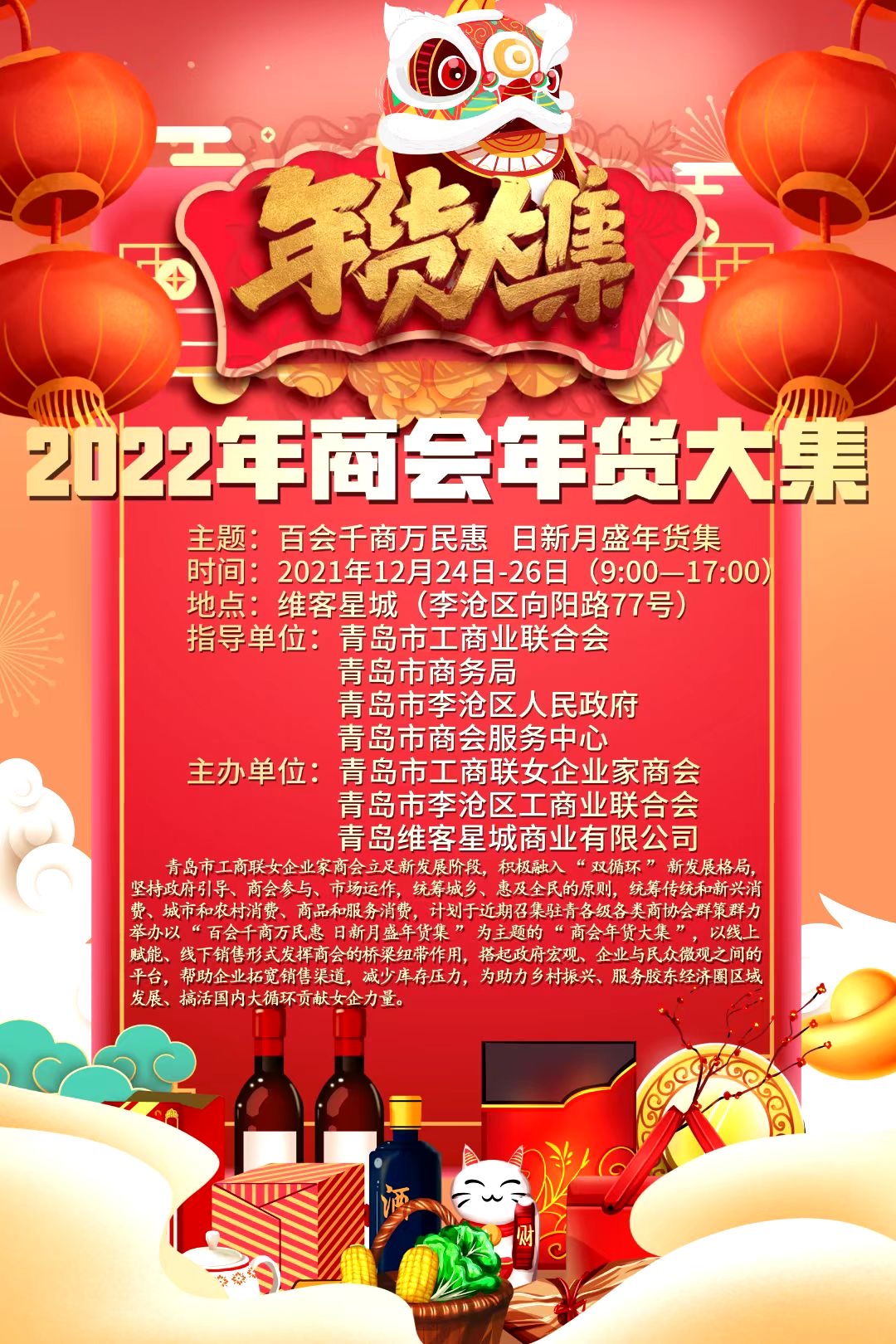 12月24日,2022年商會年貨大集在維客星城開市。本屆商會年貨大集吸引了近80家市級與...
